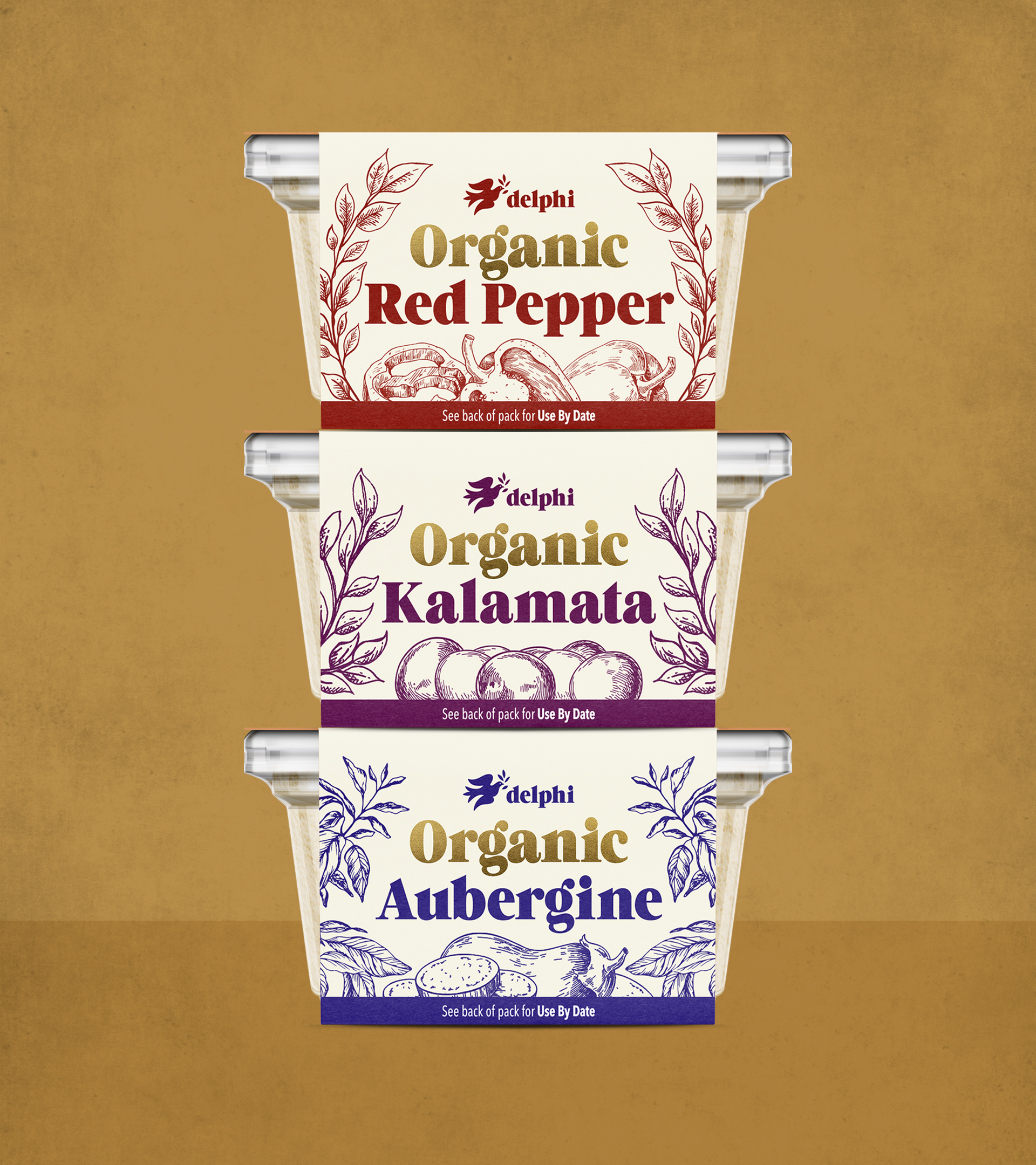 We refreshed the brand by redesigning their entire range of products and creating a visual system that enables them to expand their flavour range while retaining brand consistency.After the refresh of the entire Delphi Foods brand and packaging design, Delphi Foods was able to attract big supermarket chains (LIDL, Asda, Sainsbury’s, Morrisons) to promote Delphi products on their shelves.